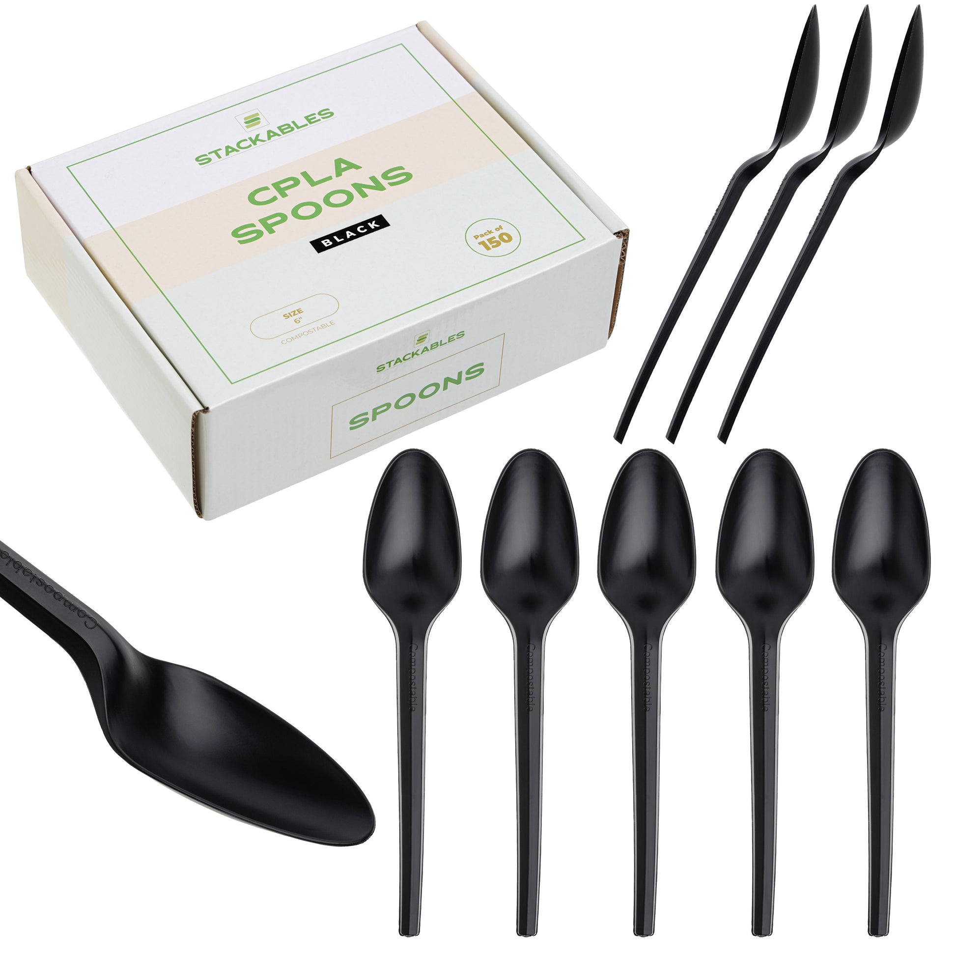 150 Pack Black CPLA Compostable Spoons - 15cm (5.9")
