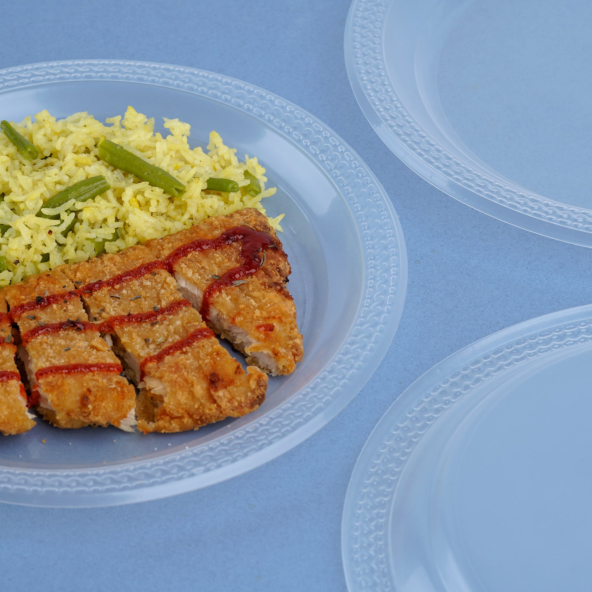 Elevate your dining experience with PRET-A-PARTY’s 9-inch clear plastic party plates. Perfect for serving main dishes, salads, and more, these plates are designed for convenience and style. Each plate features a textured rim that adds a touch of elegance, making them ideal for casual gatherings, parties, and picnics.