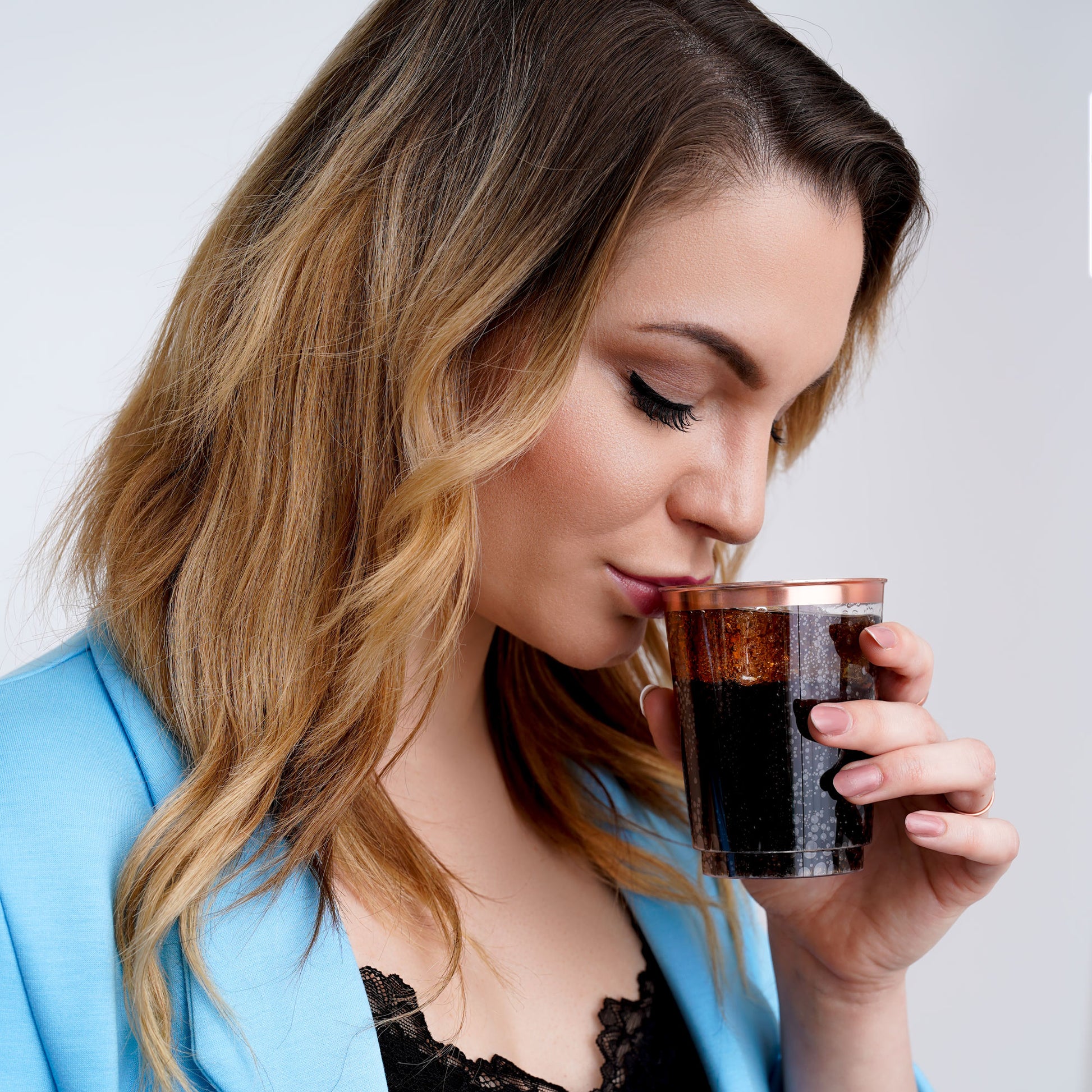 Impress your guests with these 10 oz (296 ml) clear plastic cups featuring an elegant rose gold rim. Each cup measures approximately 3 inches (7.5 cm) in diameter at the top, 2 inches (5 cm) at the base, and 3.7 inches (9.3 cm) in height, making them ideal for serving a variety of beverages, from cocktails to soft drinks. With a sleek, modern look, these cups are perfect for adding a touch of sophistication to weddings, birthdays, corporate events, and other celebrations. Enjoy stylish drinkware that enhances the aesthetic of any gathering.