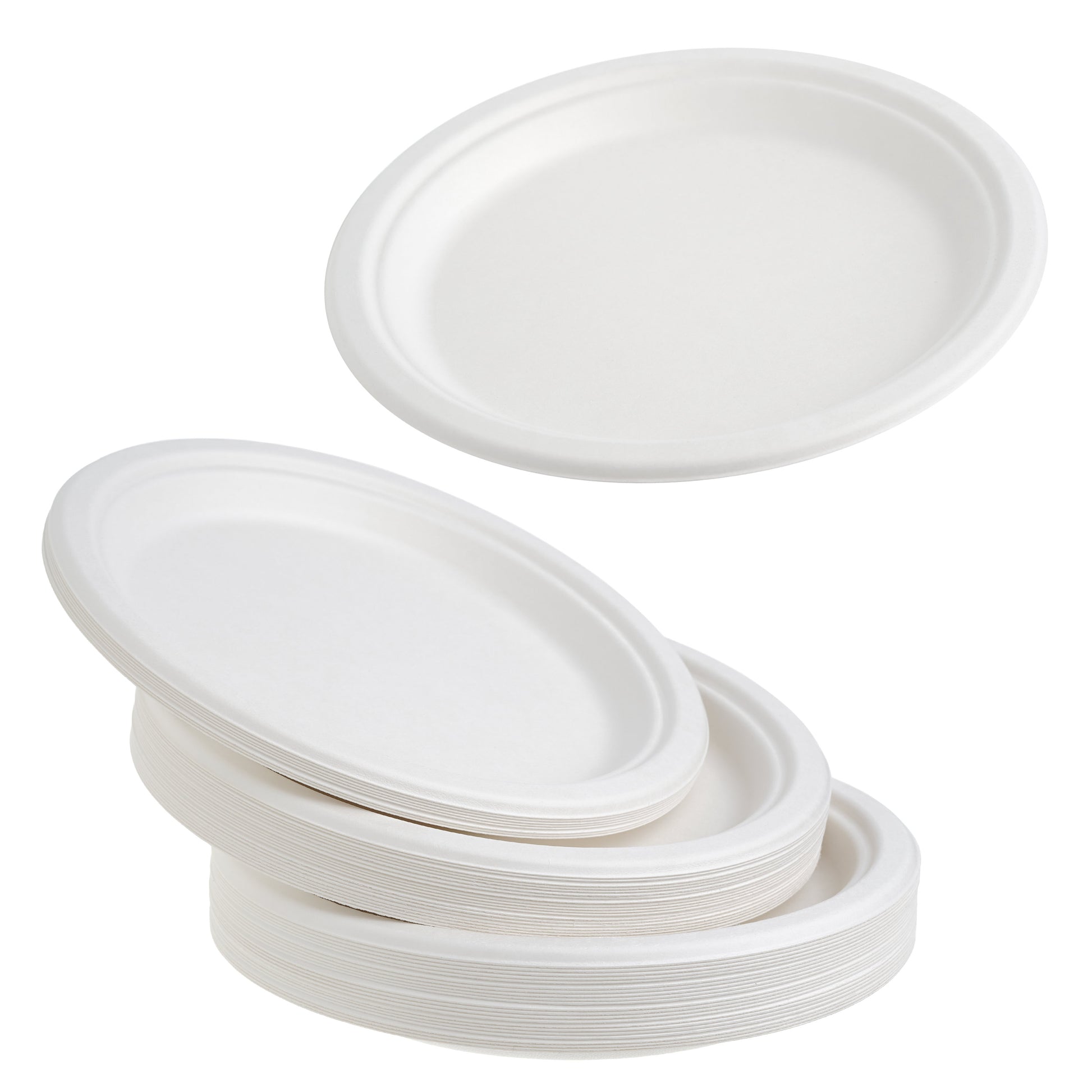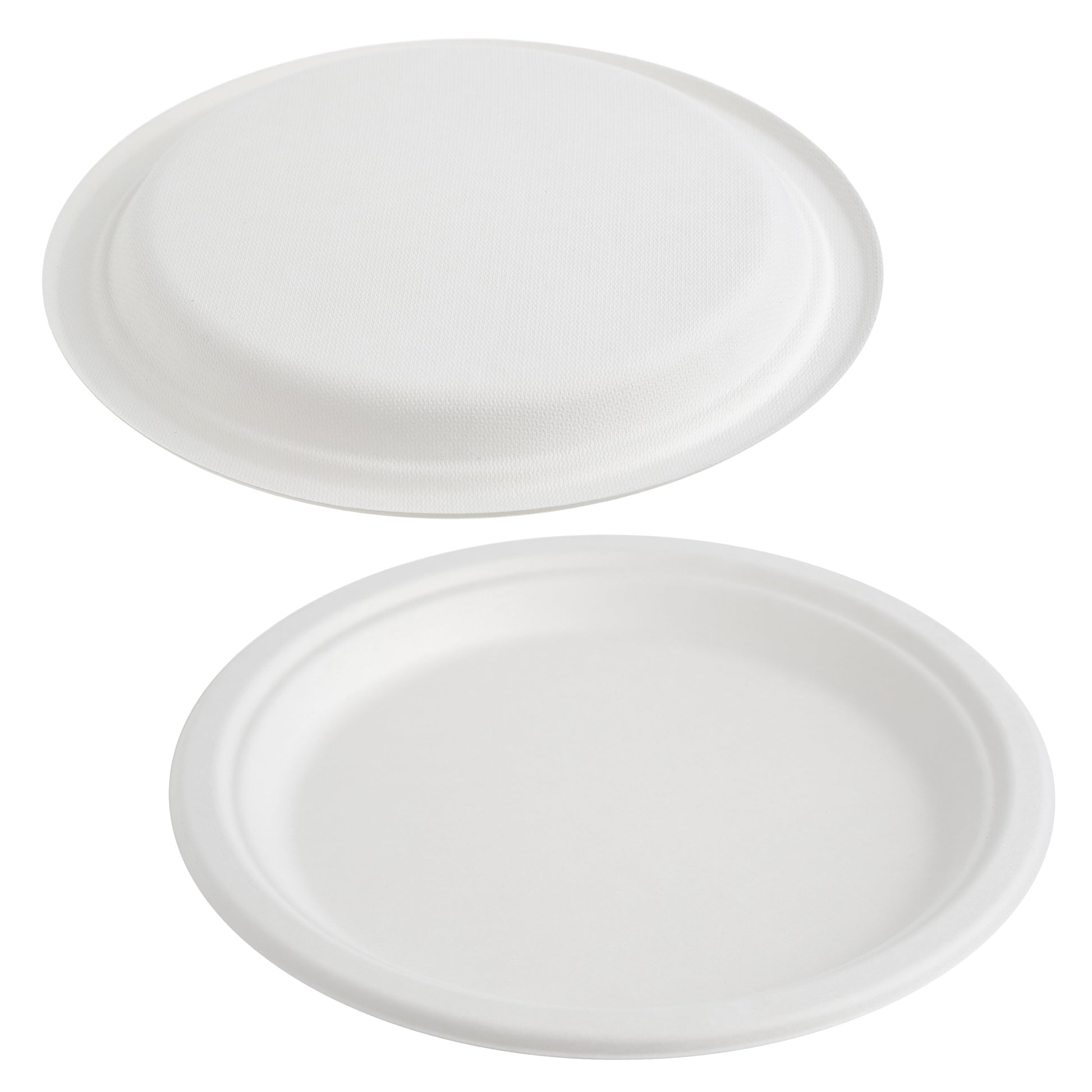 50-Pack White Bagasse 9-Inch Round Plates | Eco-Friendly Party Plates